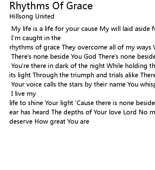 [Verse 1:] My life is a life for your cause My will laid aside for your call And reserved all the depth Of my heart Only for You [Verse 2:] I'm caught in the rhythms of grace They overcome all of my ways We align in each step that we take To live for Your glory [Chorus:] There's none beside You God There's none beside You God [Verse 3:] You're there in dark of the night While holding the sun and its light Through the triumph and trials alike There's no one beside You [Verse 4:] Your voice calls the stars by their name You whisper them all to their place To testify of Your wonder and praise Both now and forever [Bridge:] I live my life to shine Your light 'Cause there is none beside You God No eye has seen No ear has heard The depths of Your love Lord No mind can fathom The love You deserve How great You are |