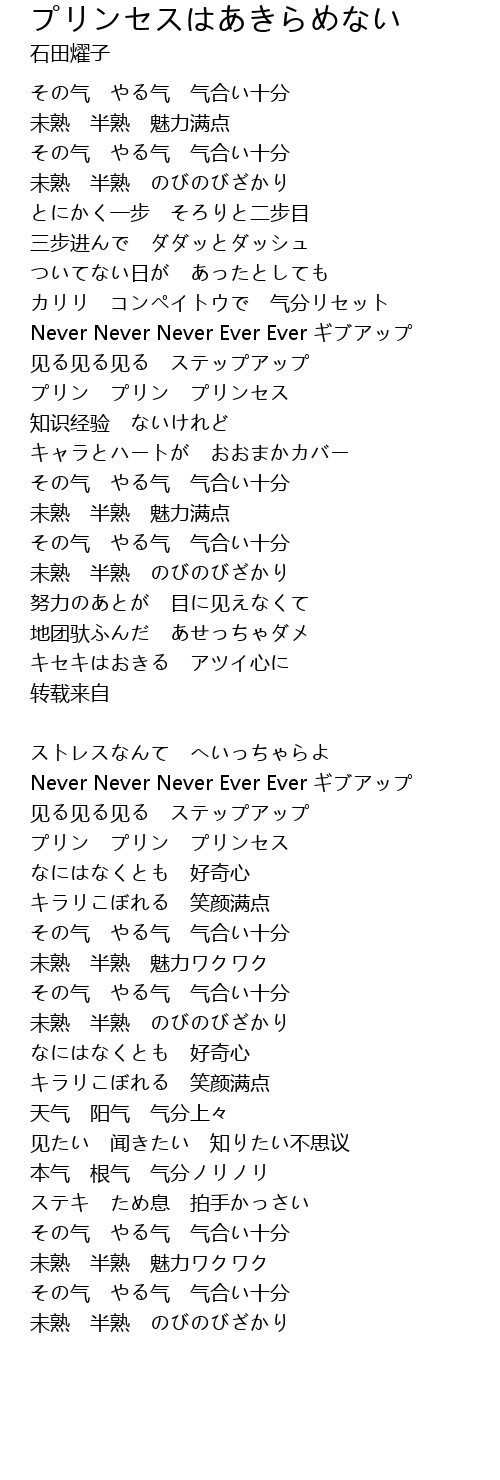 | 歌曲 | プリンセスはあきらめない |
