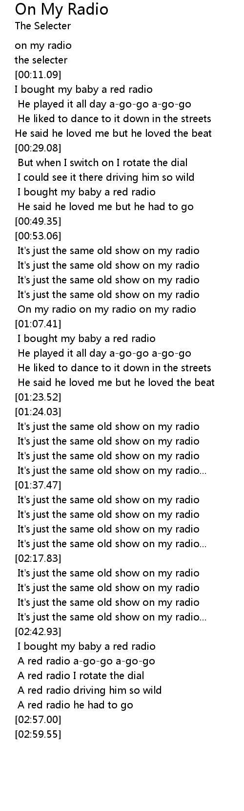 On my radio on my radio on my radio |