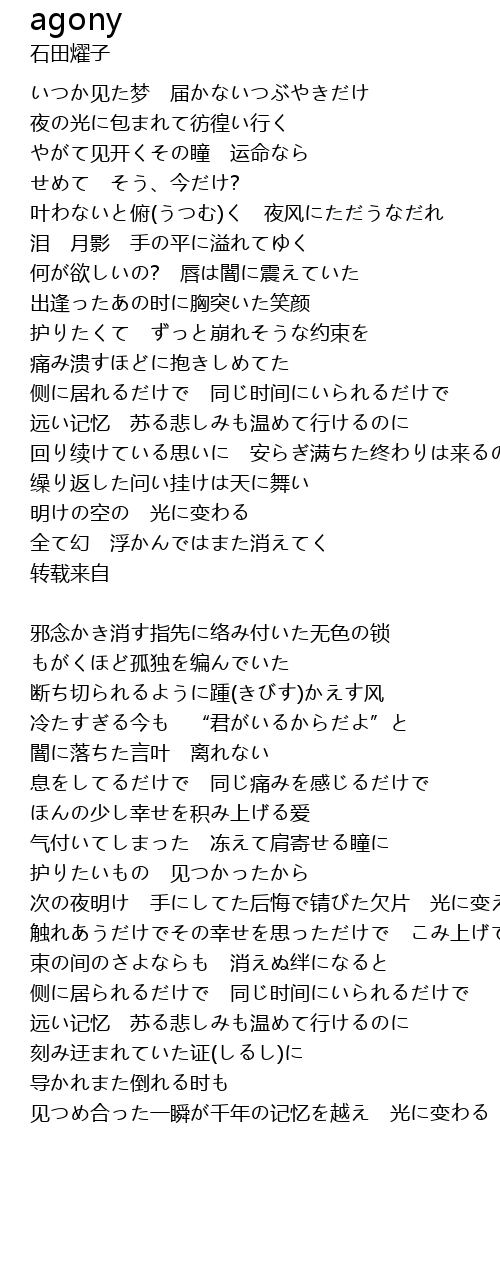 | 回り续けている思いに 安らぎ满ちた终わりは来るの? | |