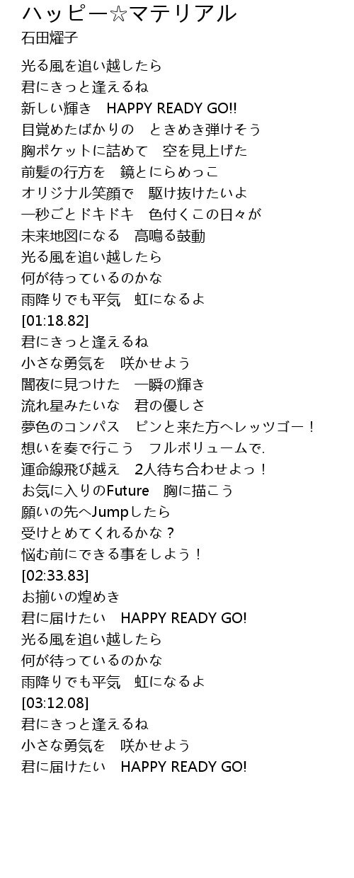 | [03:24.47] | 君に届けたい HAPPY READY GO! |