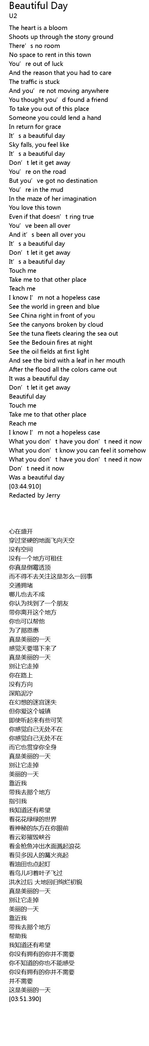 | [03:31.600] | 这是美丽的一天 |