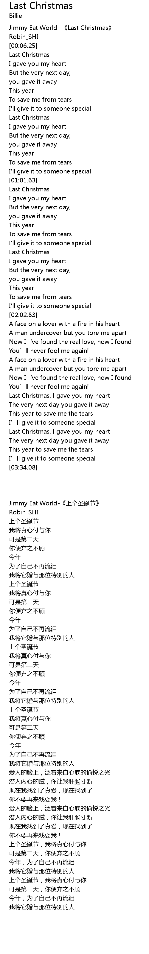 | [00:02.25] | Jimmy Eat World Last Christmas |