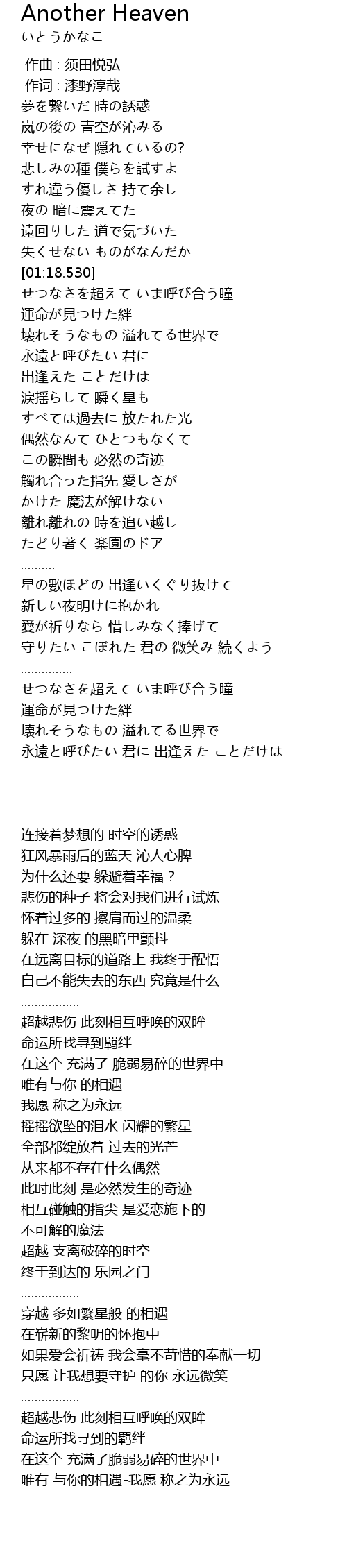 | [02:17.230] | この瞬間も 必然の奇迹 |
