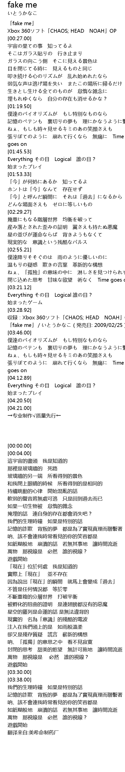 | [00:04.00] | Xbox 360ソフト「CHAOS; HEAD NOAH」OP |