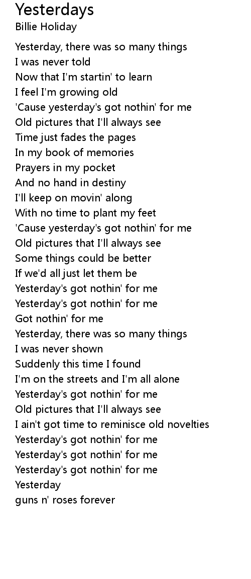 'Cause yesterday's got nothin' for me |