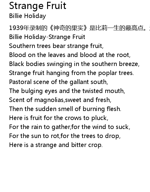 | 歌曲 | Strange Fruit |