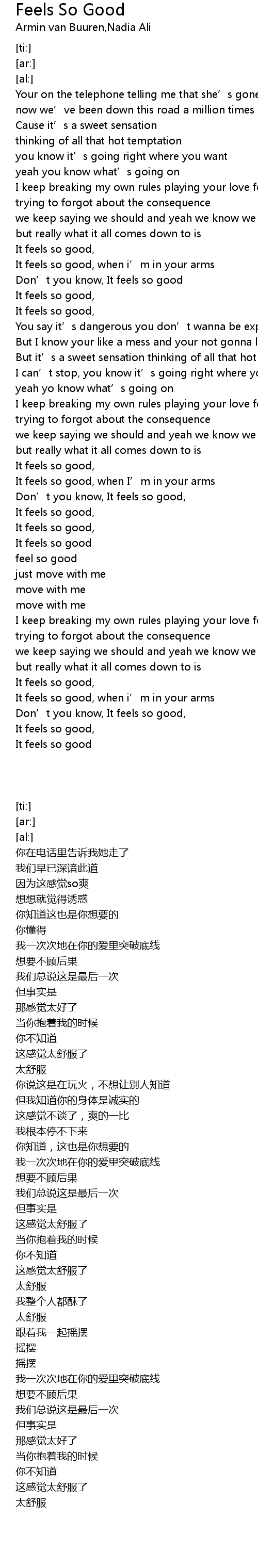 | [00:51.65] | It feels so good, |