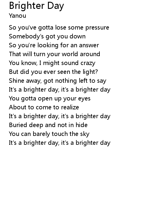 | It's a brighter day, it's a brighter day | |