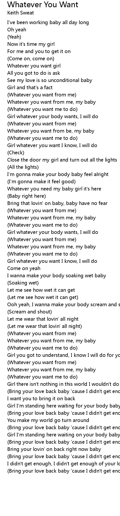Girl whatever you want I know, I will do |