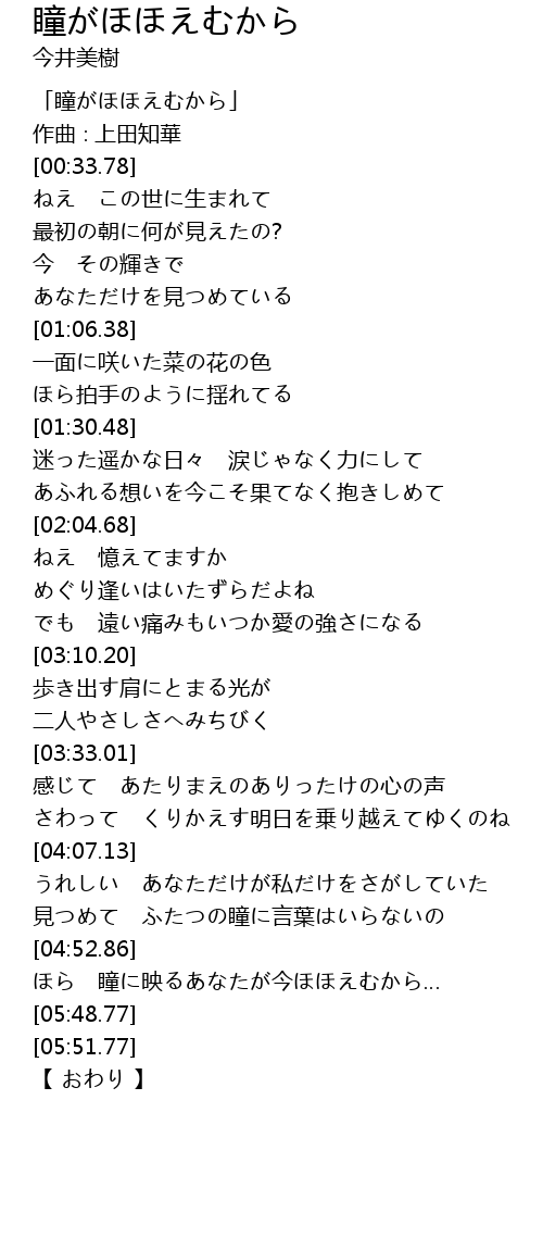 | [00:01.78] | 「瞳がほほえむから」 |