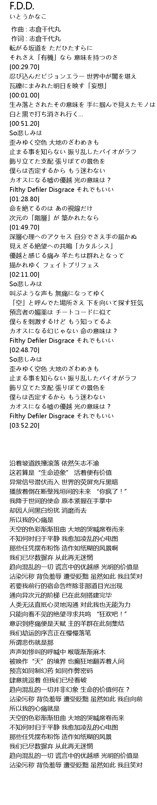 | [03:45.70] | Filthy Defiler Disgrace それでもいい |