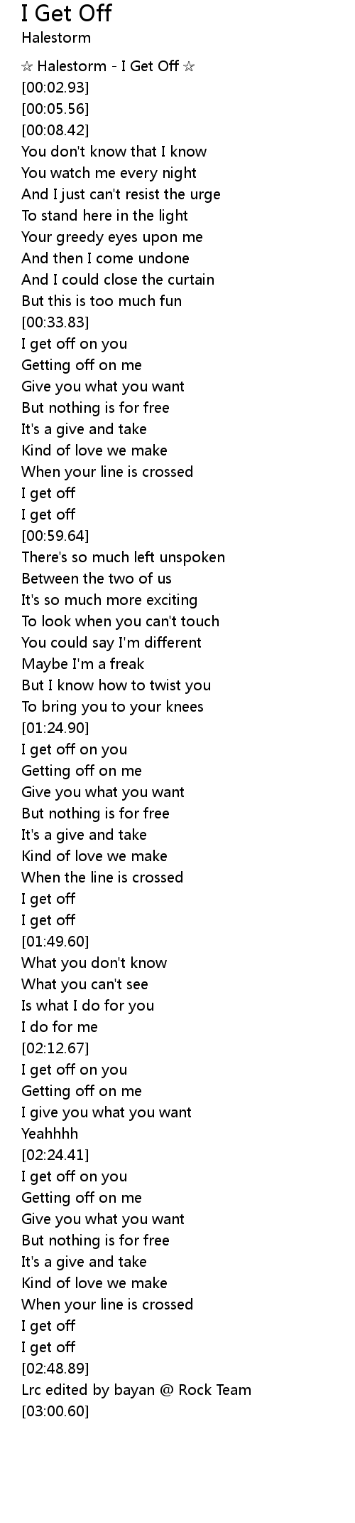 | [00:01.16] | ☆ Halestorm - I Get Off ☆ |