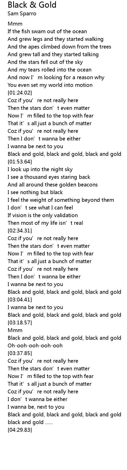 | [02:59.44] | Black and gold, black and gold, black and gold |