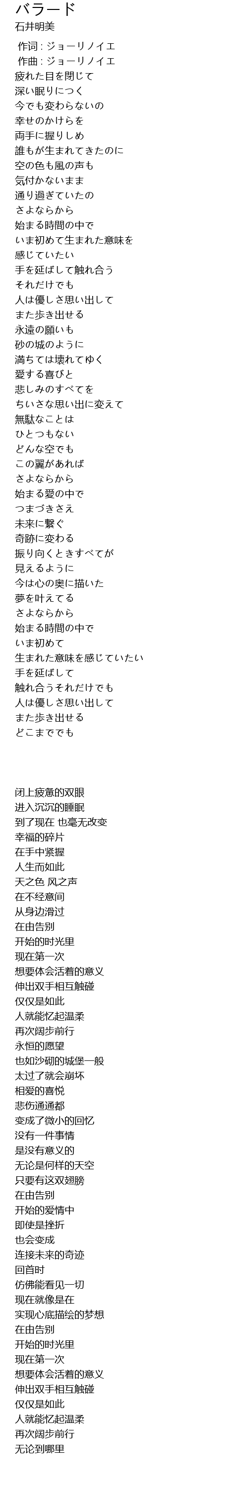 作词 : ジョーリノイエ |