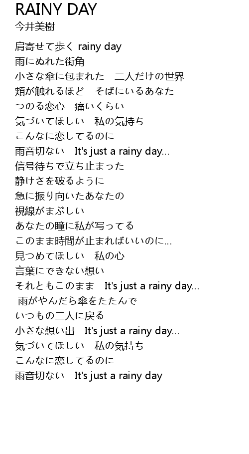 | [00:19.33] | 肩寄せて歩く rainy day |