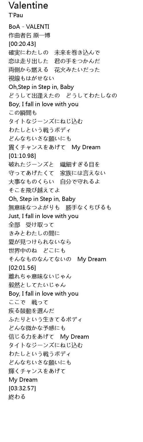 | [00:00.00] | BoA - VALENTI |