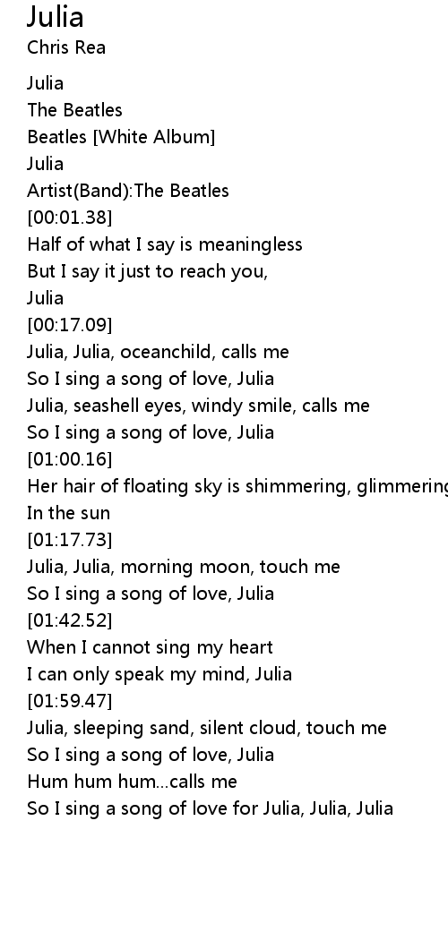 So I sing a song of love for Julia, Julia, Julia |