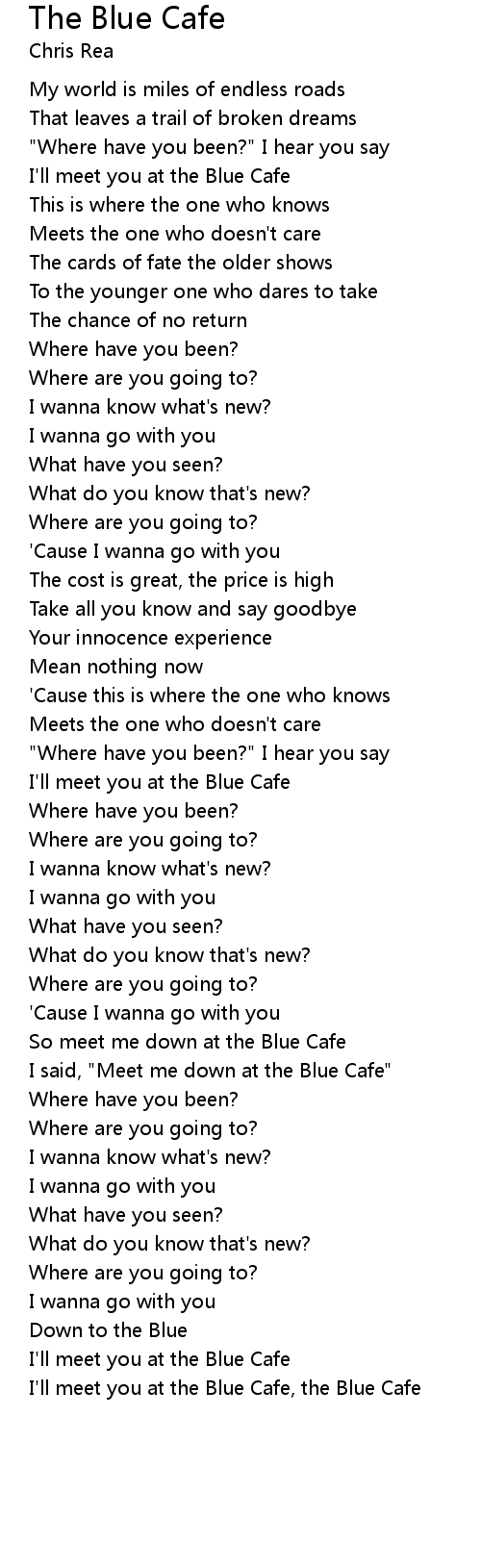 I'll meet you at the Blue Cafe, the Blue Cafe |
