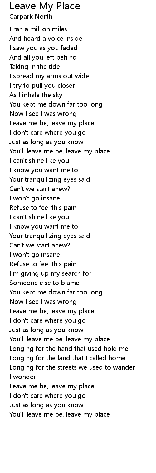Leave me be, leave my place |