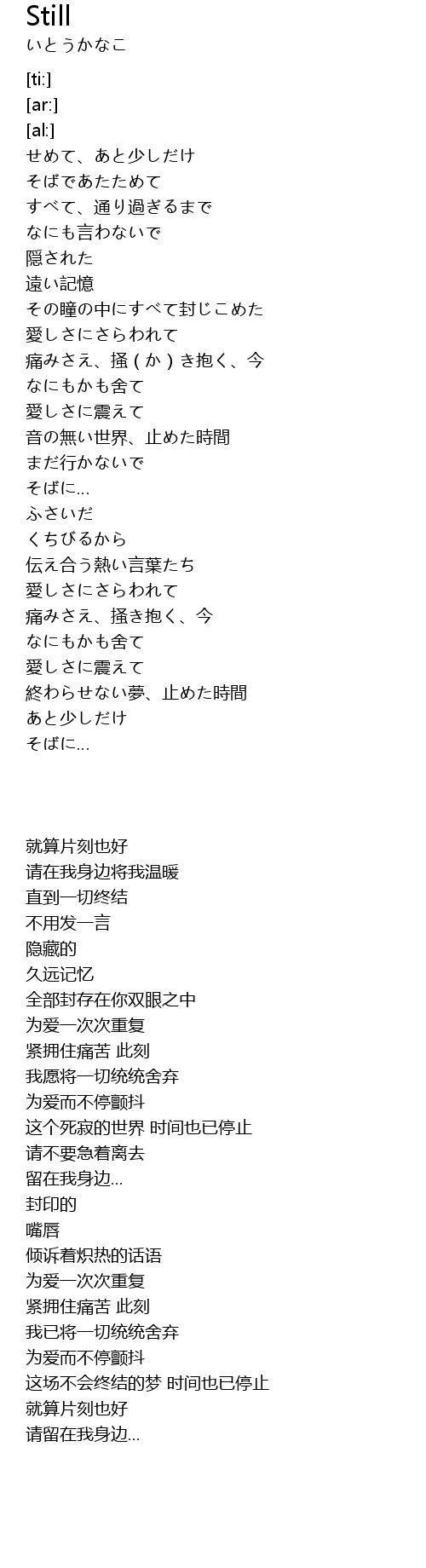 | [01:42.29] | 音の無い世界、止めた時間 |