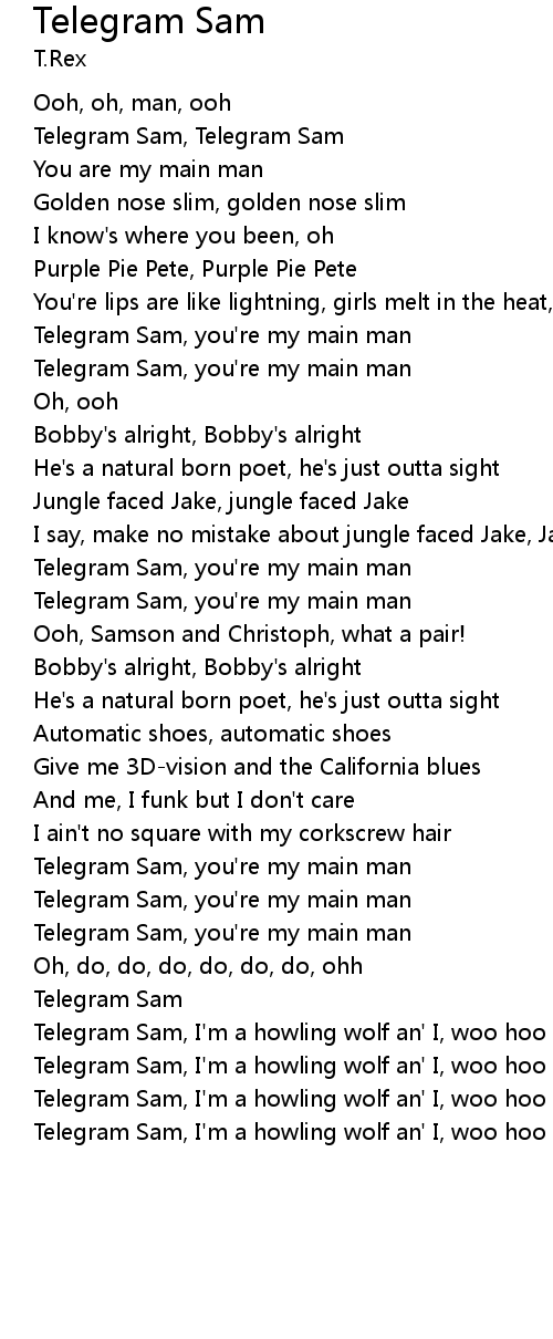 Telegram Sam, I'm a howling wolf an' I, woo hoo |