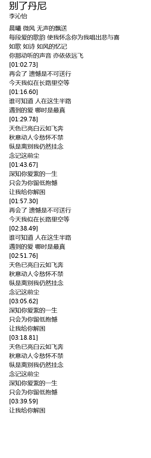 | [02:25.78] | 再会了 遗憾是不可送行 |