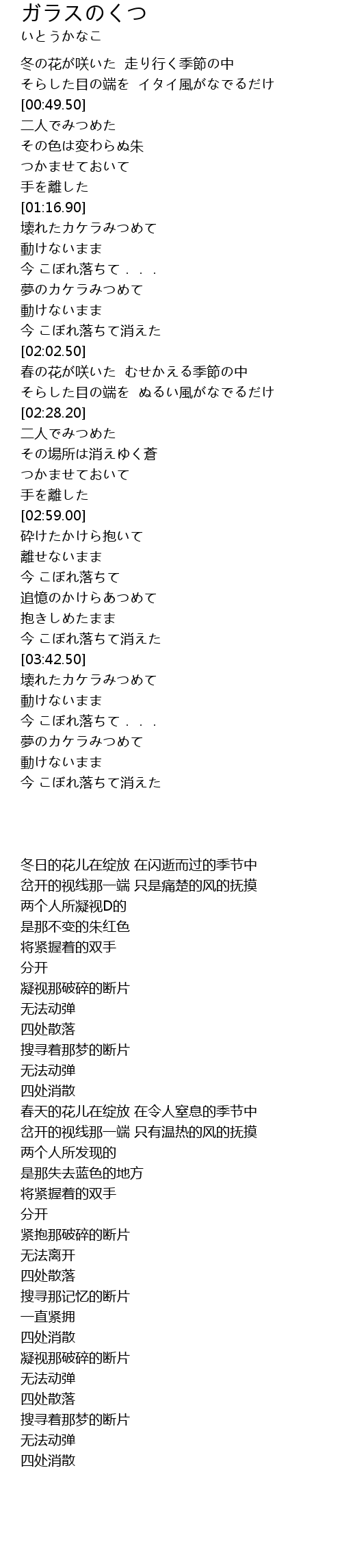 | [00:26.30] | 冬日的花儿在绽放 在闪逝而过的季节中 |