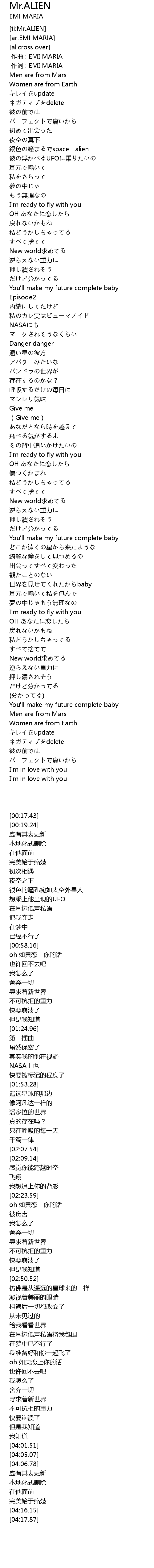 | [00:35.16] | 銀色の瞳まるでspace alien |