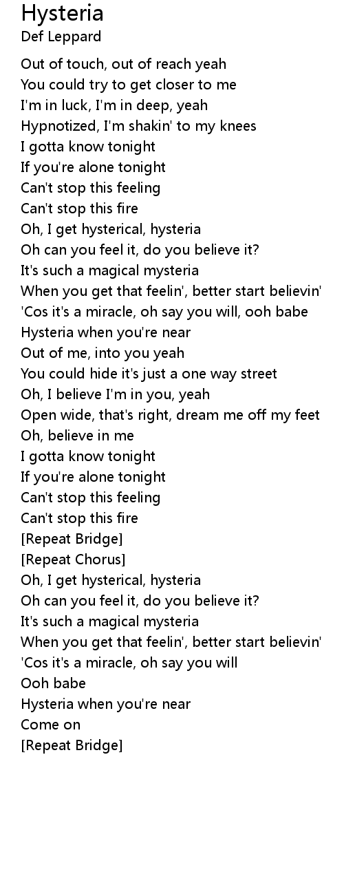 Oh, I get hysterical, hysteria |