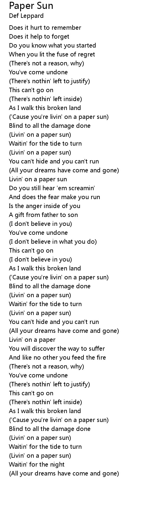 Paper Sun 歌词
