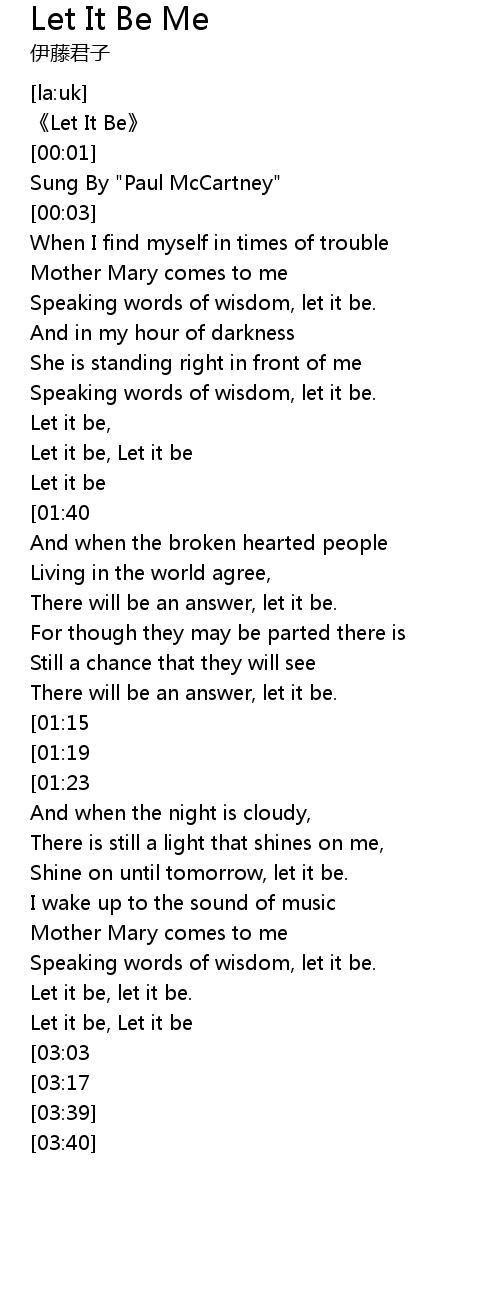 | [03:00] | Let it be, Let it be |