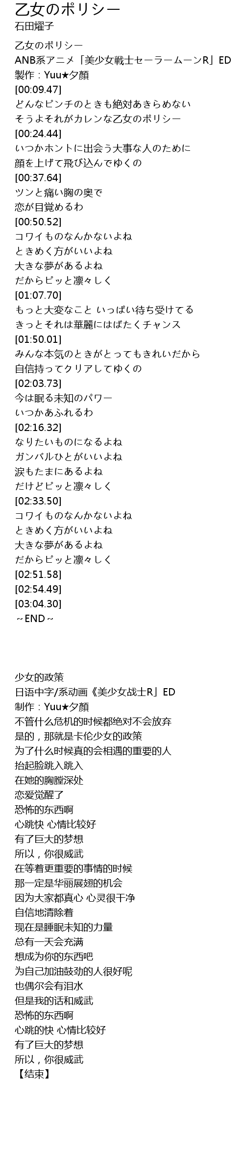 | [00:01.00] | 日语中字/系动画《美少女战士R」ED |