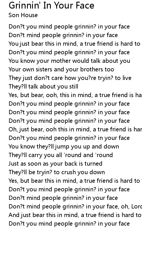 Don?t you mind people grinnin? in your face |