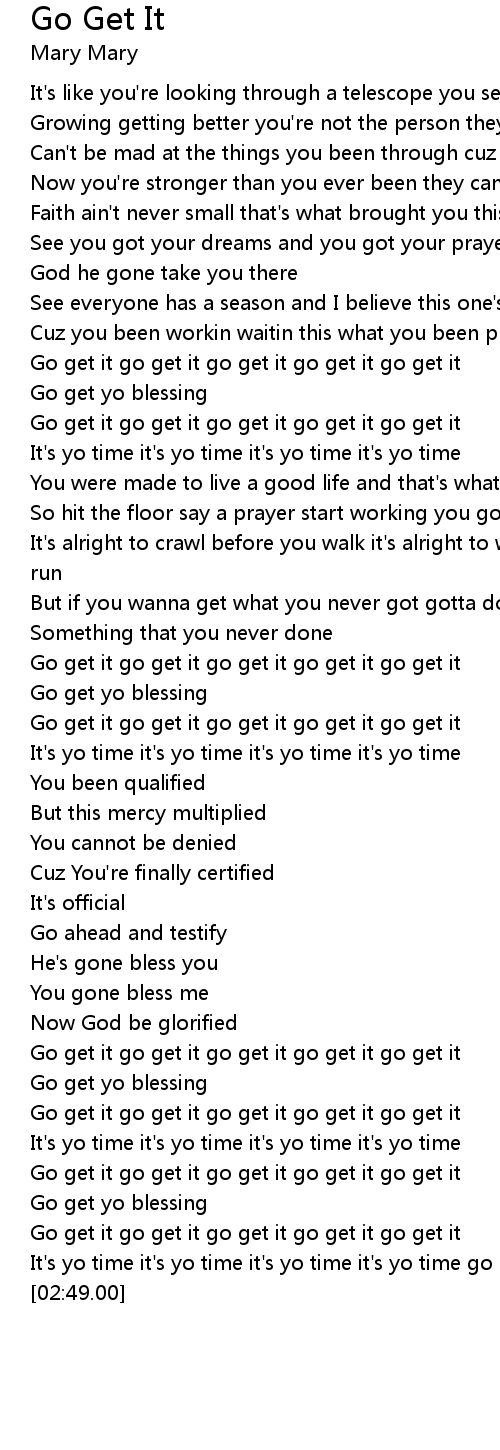 Go get it go get it go get it go get it go get it |