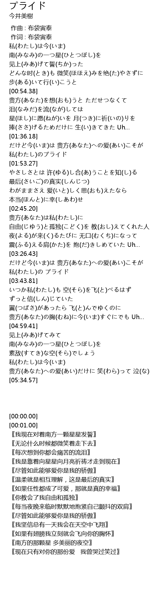| [01:36.80] | だけど今(いま)は 贵方(あなた)への爱(あい)こそが 私(わたし)のプライド |