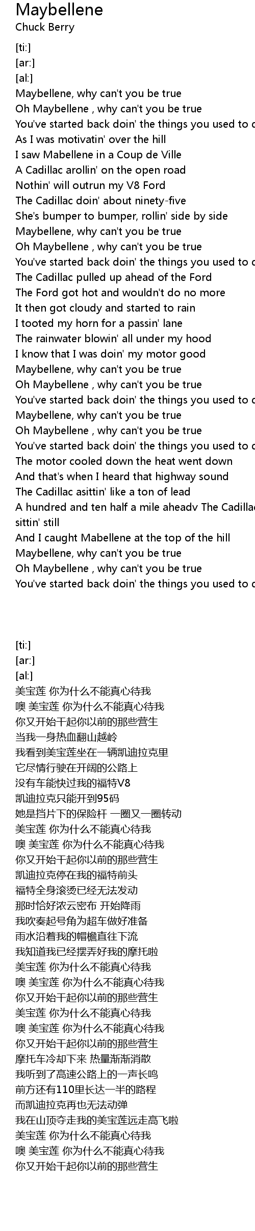 [01:54.99] Maybellene, why can't you be true