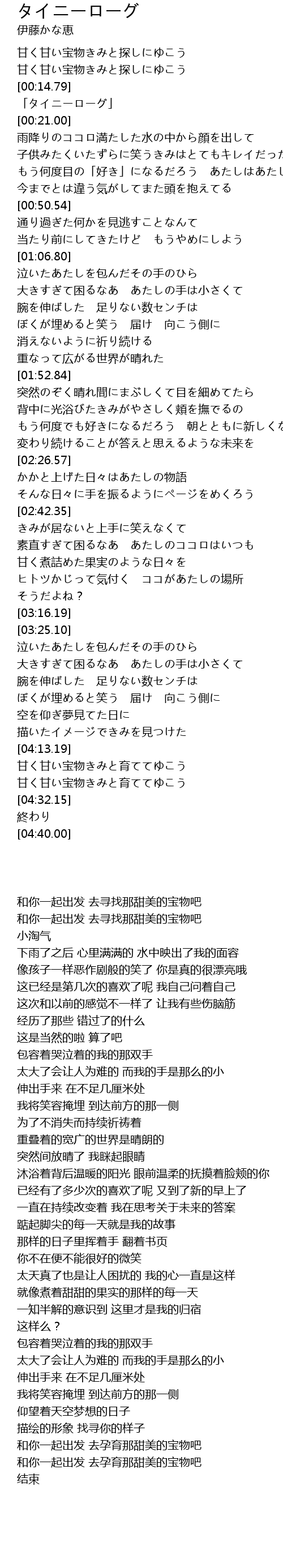 | [04:24.66] | 和你一起出发 去孕育那甜美的宝物吧 |