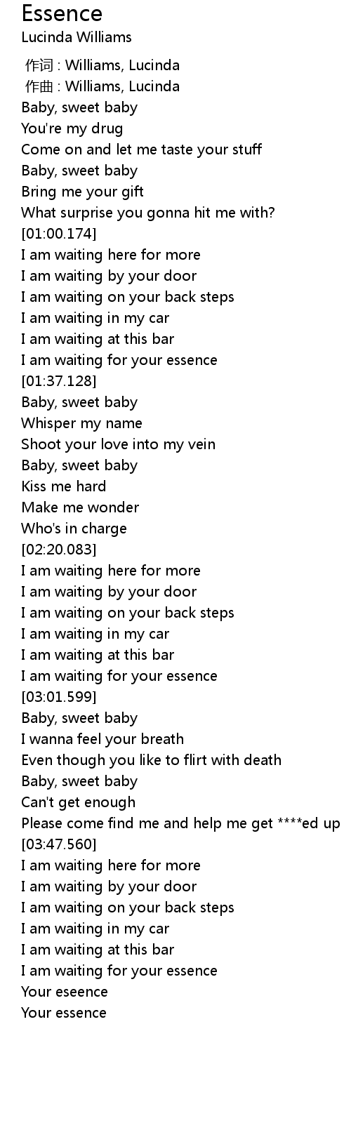 | [02:53.088] | I am waiting for your essence |