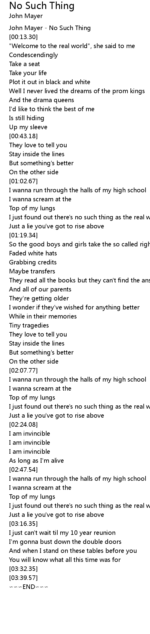| [00:00.10] | John Mayer - No Such Thing |