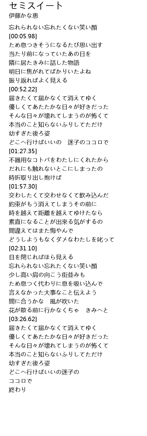 | [03:27.99] | 届きたくて届かなくて消えてゆく |
