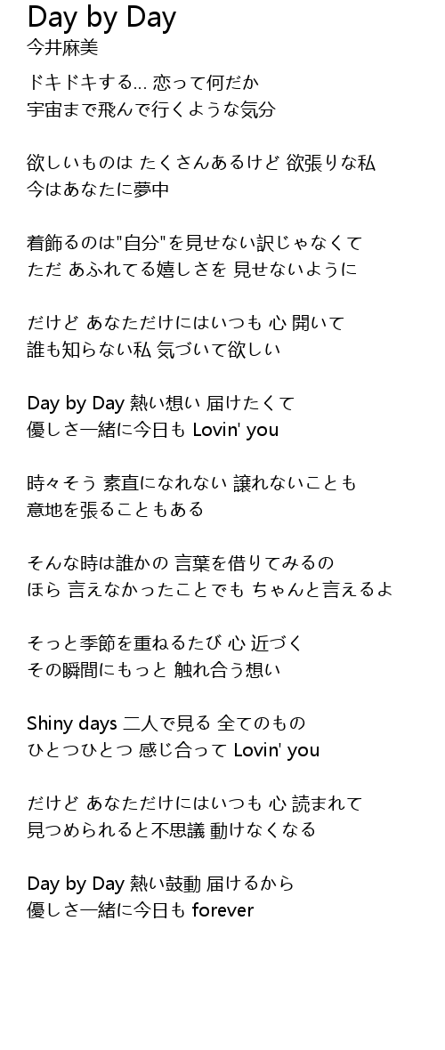 | 欲しいものは たくさんあるけど 欲張りな私 今はあなたに夢中 | |