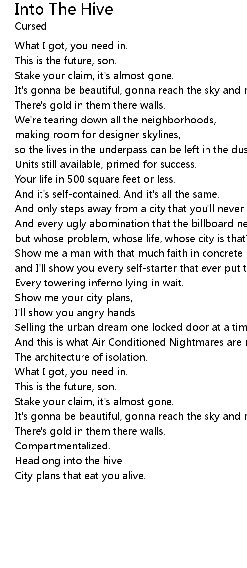 so the lives in the underpass can be left in the dust by a whole new crowd. |