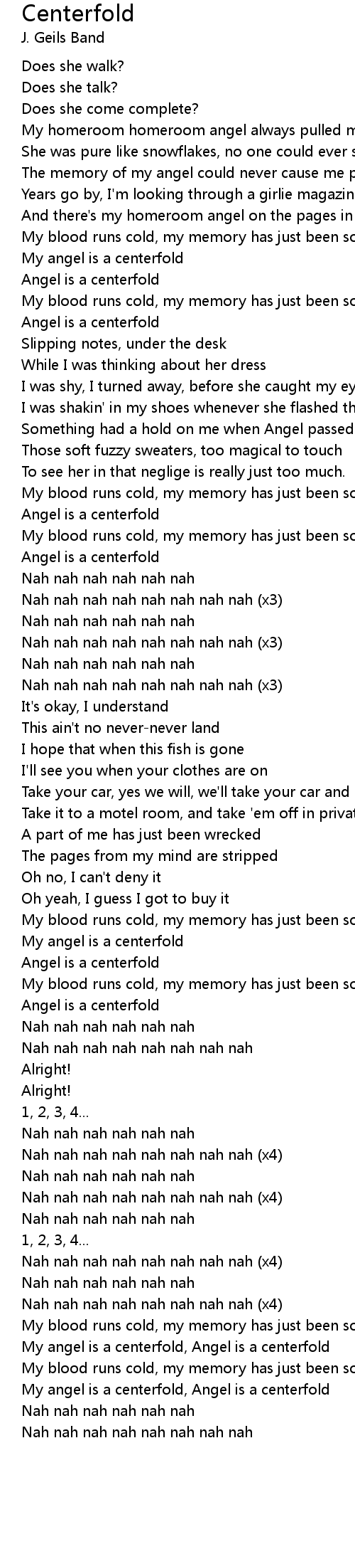 My angel is a centerfold |