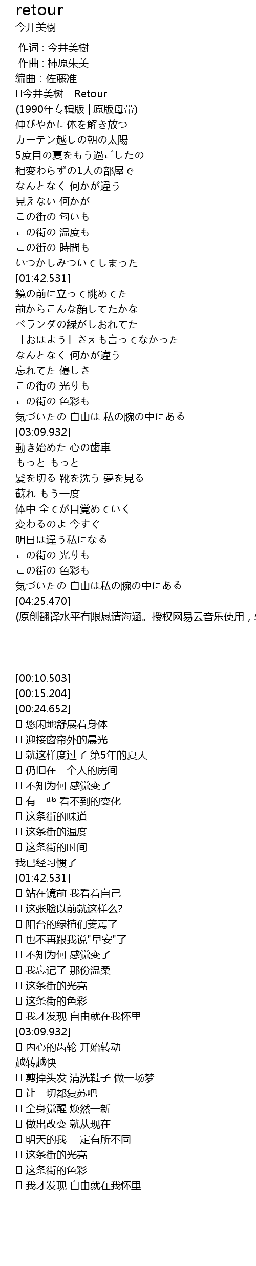 [00:15.204] ♪今井美树 - Retour