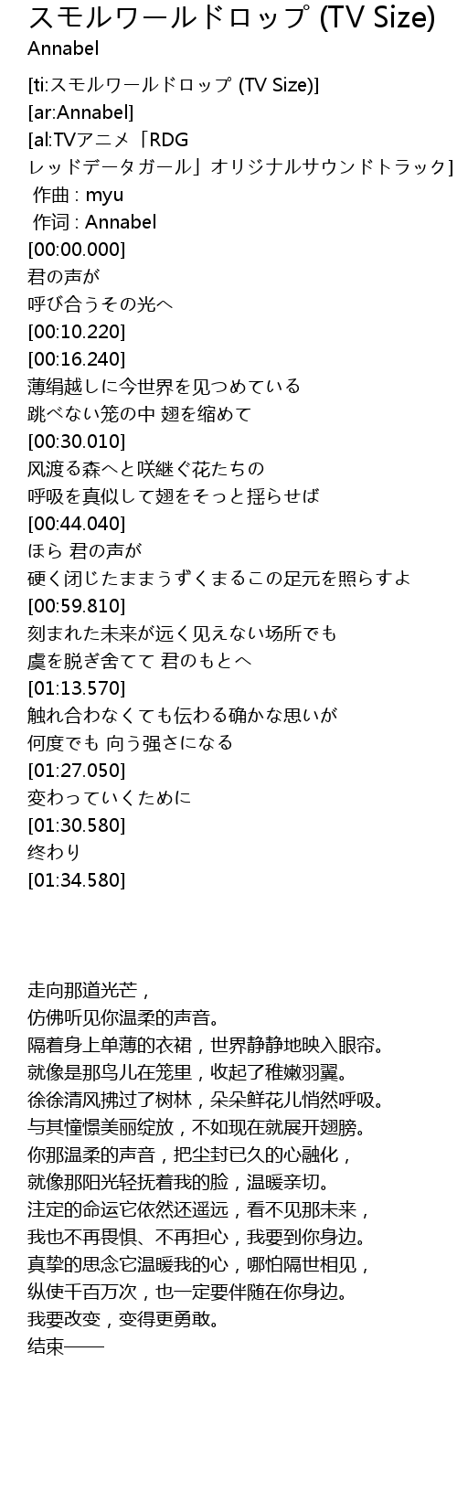 | 歌曲 | スモルワールドロップ (TV Size) |