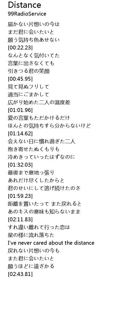 | [01:15.62] | 会えない日に慣れ過ぎた二人 |