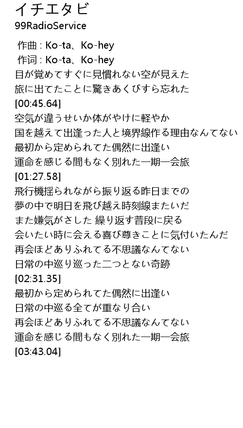 | [03:31.41] | 運命を感じる間もなく別れた一期一会旅 |