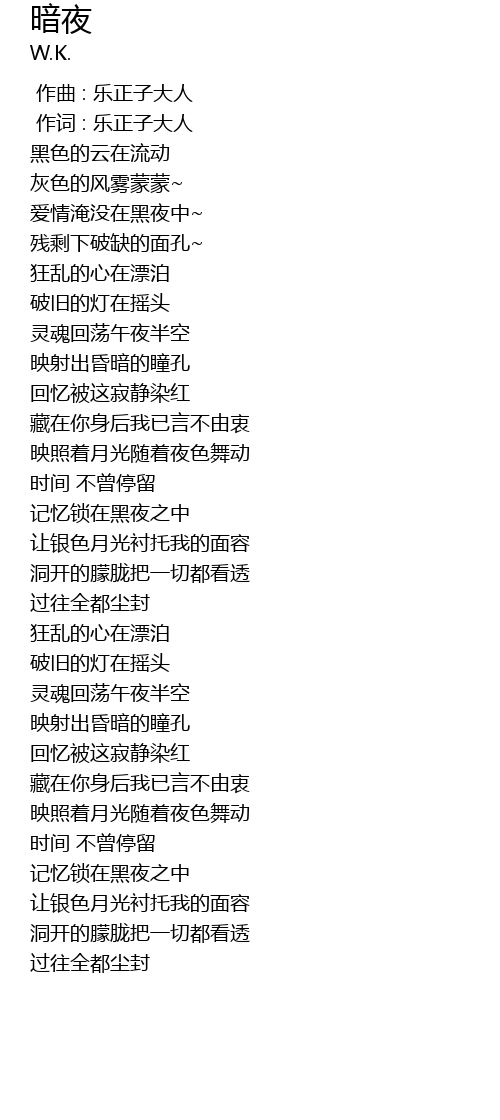 | [00:44.65] | 爱情淹没在黑夜中~ |
