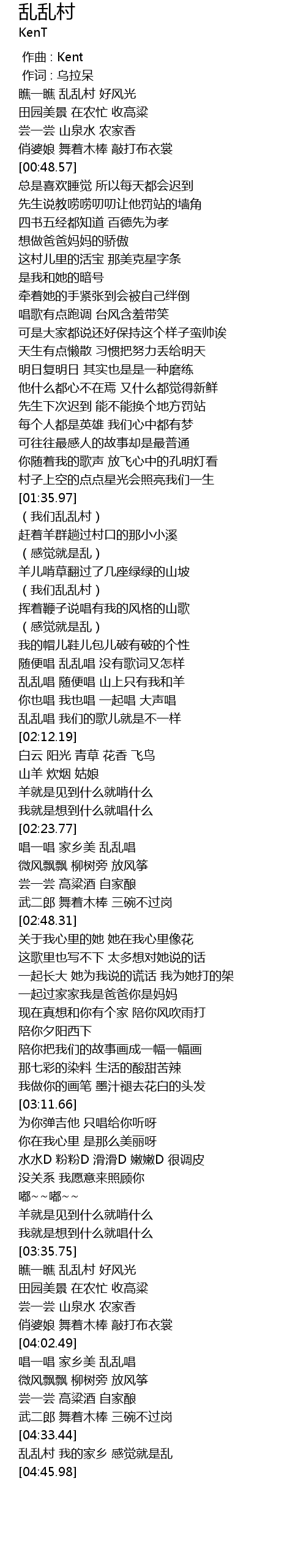 | [04:35.99] | 乱乱村 我的家乡 感觉就是乱 |